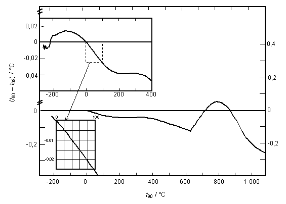 Le tableau 1 (extrait en partie de la référence [2]) donne les écarts (t90 - t68) de manière quantitative (la valeur à 40 °C a été corrigée par rapport à [2]).